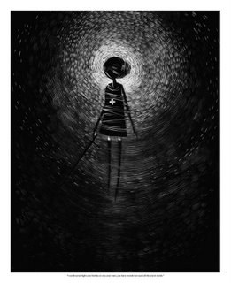 His latest work is currently being exhibited at the Richard Goodall Gallery in Manchester, England. For fans like myself, this was an opportunity to [finally] nab one of his prints. But for reasons not unrelated to the recession, I passed on these awesome, limited-edition intaglio prints I had been ogling.